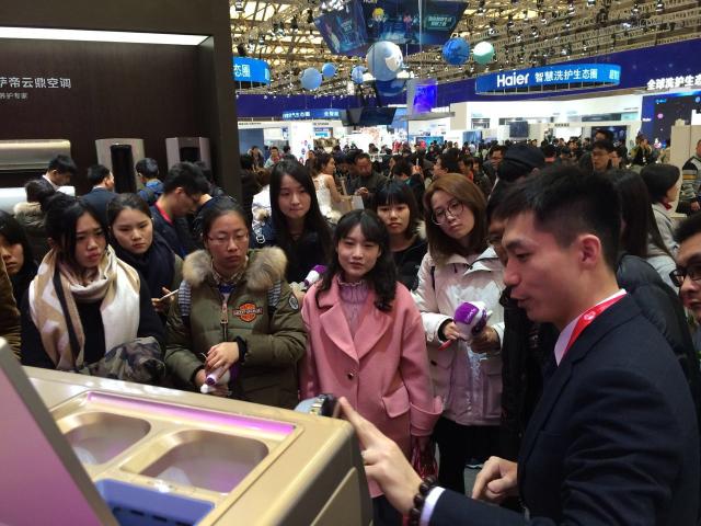 依据工业设计专业试验班培养目标,为开拓学生眼界,增进其与业界的交流和互动,提升学生的设计实践能力,*番号鸽 于310日下午组织工设13级以及14级试验班学生参观了在上海新国际博览中心举办的中国家电博览会(AWE2016)。家博会(Appliance & electronics World Expo, 简称AWE)由中国家用电器协会主办,是目前家电行业规格最高的大型综合性展会。此次受参展企业海尔集团之邀工设专业近四十名师生参观了海尔展厅,并聆听了旗下品牌——卡萨帝(Casarte系列新品的专业介绍。