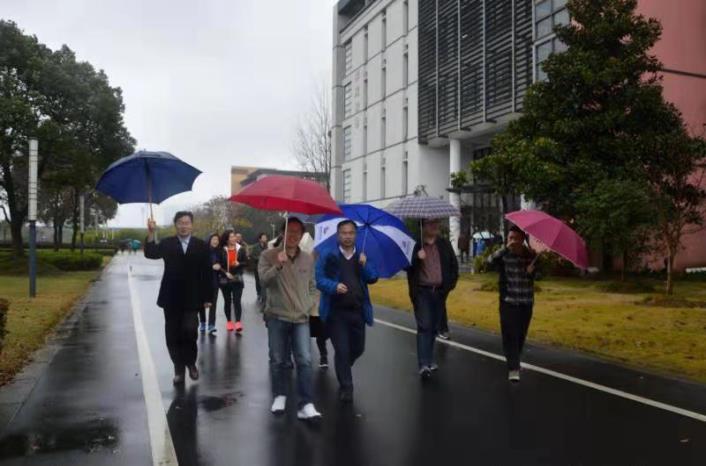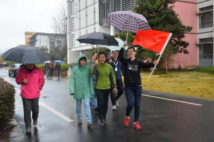 本次健步走路线从学院门口集合点出发,沿着校园环路,再到学院门口,视为完成行程。活动伊始,老师们在学院楼门前拍了集体照。之后,健身走活动正式开始。虽然天空下着小雨,却给这次活动增添了些许诗意,红的,黄的,绿的,五彩斑斓的雨伞,伴随着老师们一个个矫健的身姿,为冬意渐浓的校园增添了五彩缤纷的活力。一路上,老师们一边大踏步地走,一边开心地交流。当回到学院门口时,每个人都感觉浑身热乎乎的。
