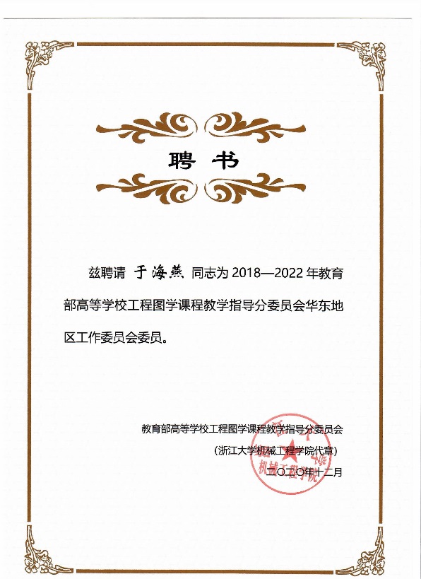机械基础系副主任(主持工作)于海燕老师受聘为委员,这是对我校在图学教育工作的充分肯定。