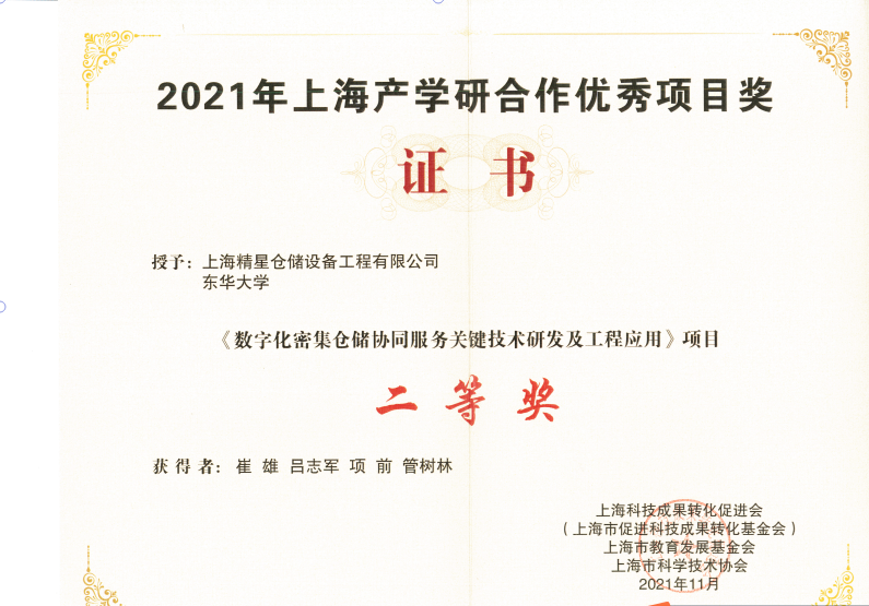 20211210日,上海产学研合作优秀项目奖表彰大会在市政协举行,大会共评选出30个获奖项目。番号鸽 吕志军副教授团队与上海精星仓储设备工程有限公司合作的《数字化密集仓储协同服务关键技术研发及工程应用》获“2021年上海产学研合作优秀项目奖”二等奖。