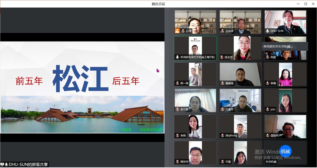 3月29日,学院教授、博士生导师、松江区政协常委、九三学社孙志宏老师做《松江未来五年发展规划解读》在线专题报告。学院党委书记王新厚主持会议,院长单鸿波、副书记李宁蔚、副院长周其洪、党委统战委员原一高以及部分中青年教师代表参加了本次报告会。