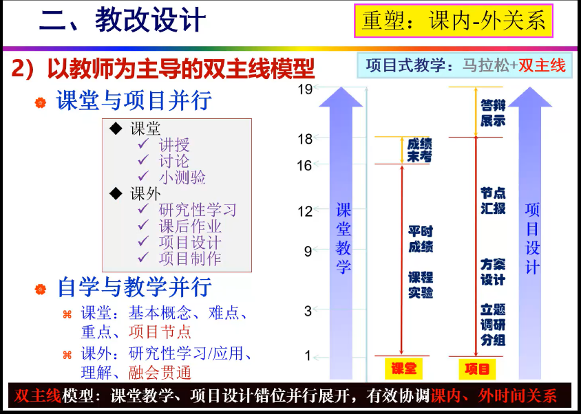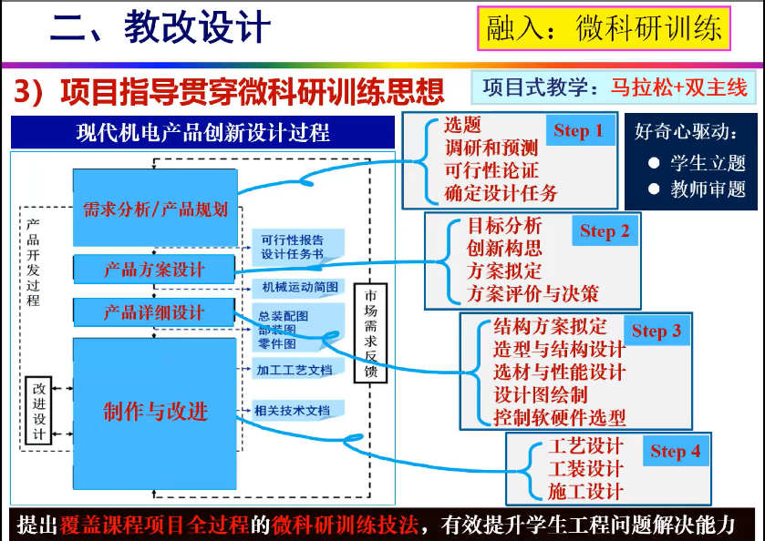 郭为忠教授从教改背景、教改设计、教改实践三方面,详实地介绍了基础课《设计与制造II》的教学改革实施过程;分享了融入课程、融入科创指导的科教融合教改经验,从产品单元和系统视角重构课程知识体系,形成层次化的知识点和能力点清单。分享了“马拉松模式+双主线模型+微科研训练技法”的项目式教学方法,以及“全过程、全要素”的综合评价方式。