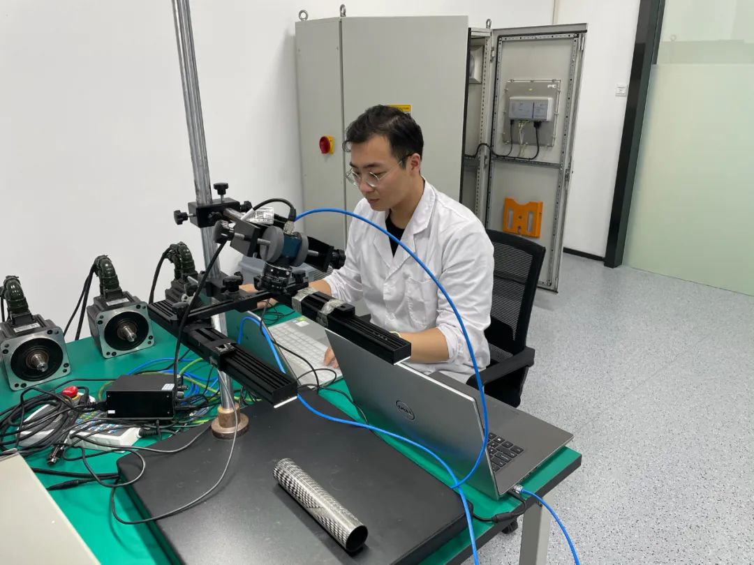 第一次项目任务的顺利完成,给李麒阳树立了实现高水平科技自立自强的信心和勇气。后续他又在导师的带领下,积极投身到轨道交通重要结构件的复合材料实验研究中去。由于轨道交通结构件尺寸较大,使用常规编织机及牵引装置进行编织效果不佳,针对这一问题,他与团队开发出国内首套由双机器人协同牵引装置配合大型变轨编织机的自动化控制系统,解决了大尺寸异形结构件编织过程精度不高的痛点,保证了产品的力学性能。