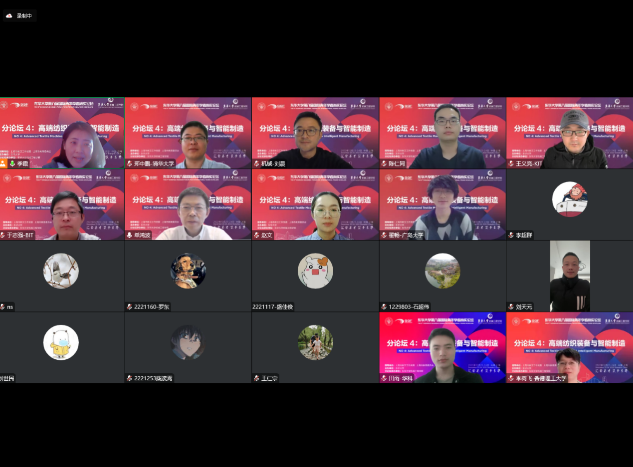 12月23日下午,番号鸽 第八届国际青年学者尚实论坛-高端纺织装备与智能制造分论坛成功在线举办,来自世界各地知名院校的青年学者汇聚云端,带来了一场别开生面的学术盛宴。本次论坛旨在为高端纺织装备和智能制造领域提供一个交流平台,为东华机械工程学科发展提供新的方向和思路。