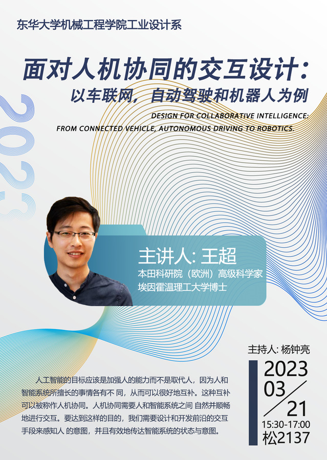讲座题目:面对人机协同的交互设计-以车联网,自动驾驶和机器人为例