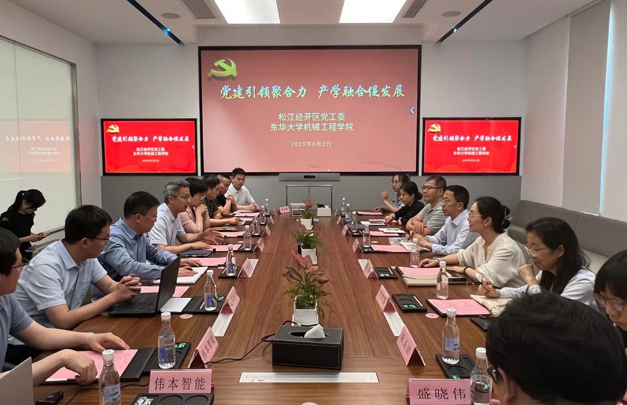 调研中,经开区党工委展示了区域化党建的工作成果,形成以经开区党工委为核心、产业集群党委为基础、支部党组织为结点的网络化体系。经开区重点企业正泰电气股份有限公司、上海超硅半导体股份有限公司、伟本智能机电(上海)股份有限公司和豪德机械(上海)有限公司相关负责人结合企业发展特点、专业技术难点以及人才培养建议等内容进行了交流发言,学院调研团队教师代表对相关内容进行了回应,双方就搭建政产学研一体化合作平台,深入开展“长三角一体化发展‘G60先进制造’交流服务月”,在党建引领下携手推进高水平科技创新探索,着力破解人才发展瓶颈等问题展开了深入的探讨。