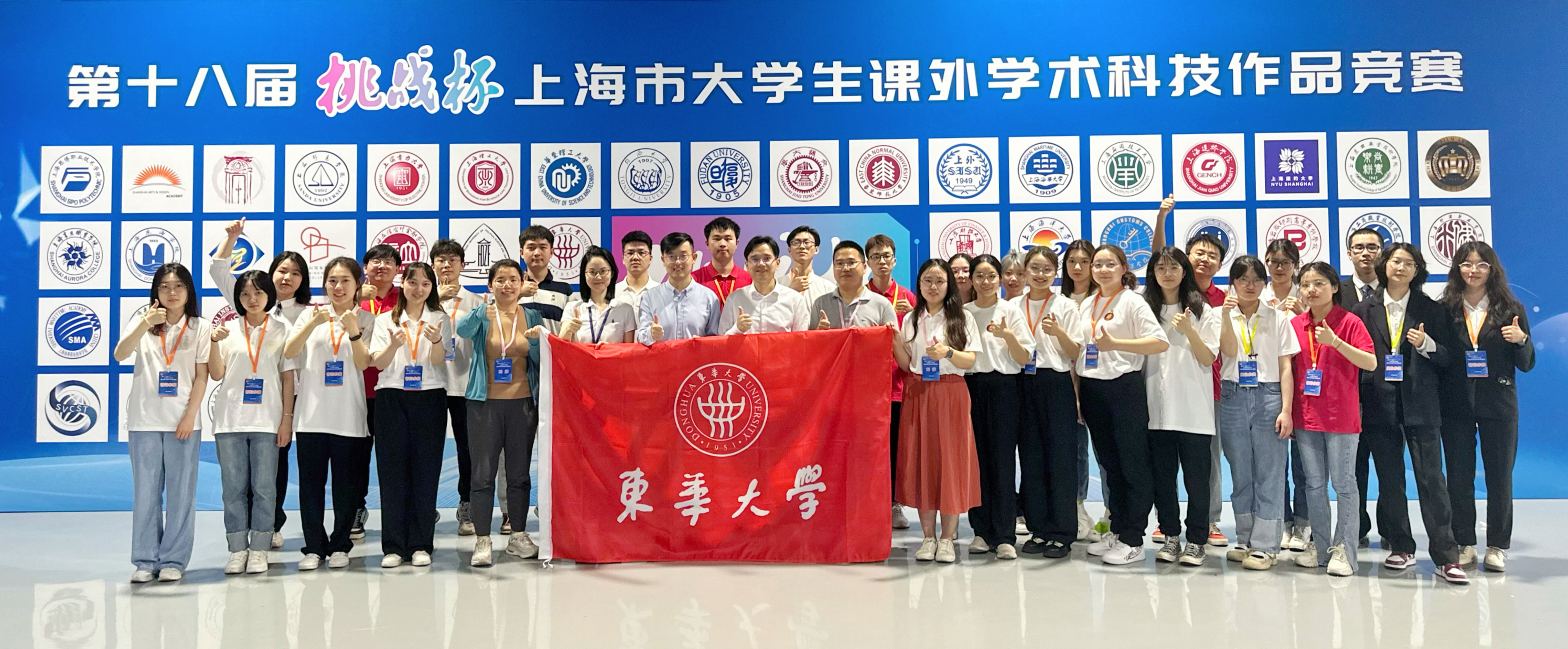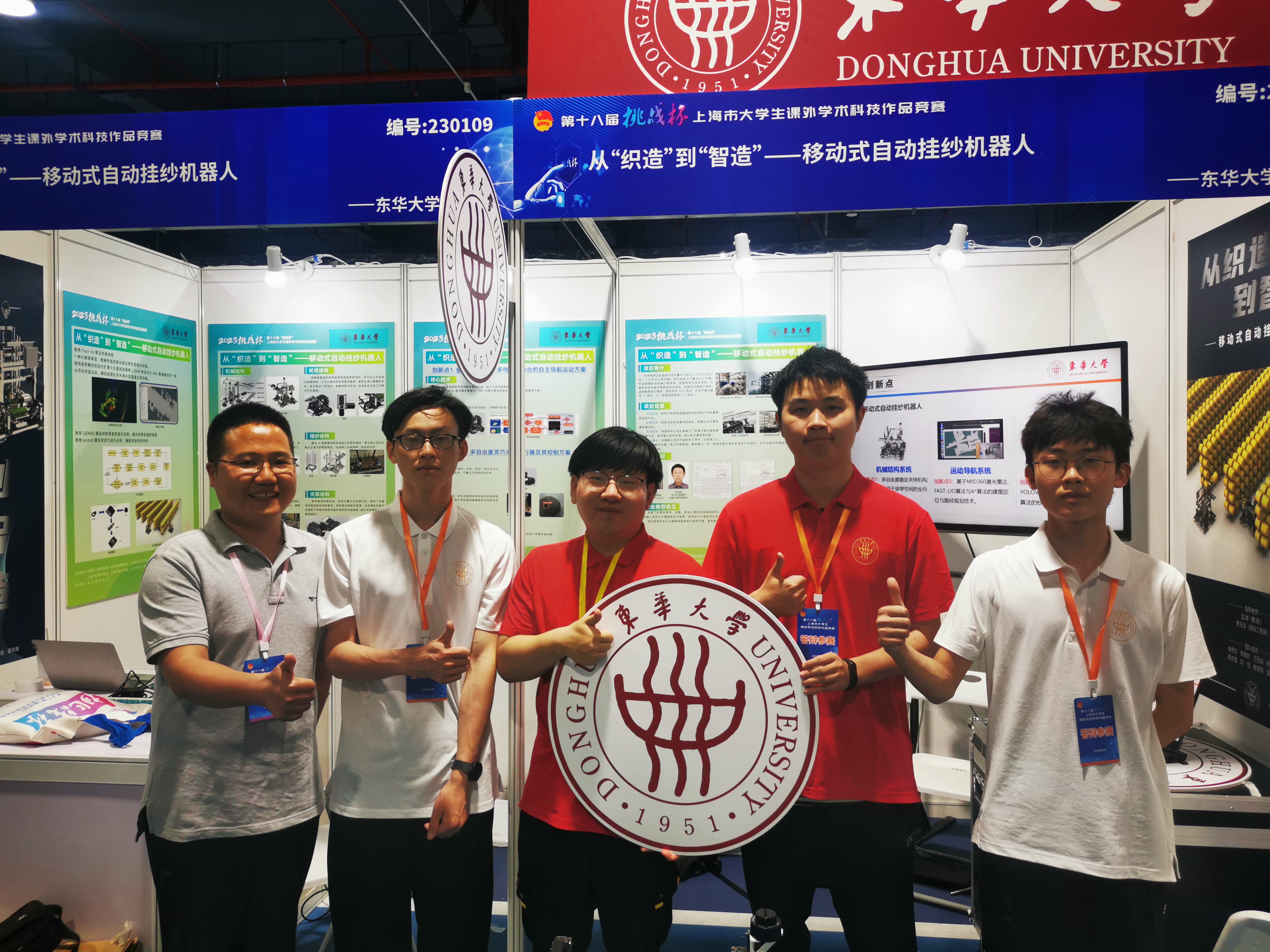 本次大赛由共青团上海市委员会、上海市教育委员会、上海市科学技术委员会、上海市科学技术协会、上海社会科学院、上海市学生联合会主办,华东师范大学承办,吸引了全市48所高校、5万名青年学子踊跃参赛,收到市级申报作品528件,最终共有180件作品参与市级决赛角逐。经过展台问辩、公开答辩等环节的激烈比拼,东华大学机械工程学院参赛项目《从“织造”到“智造”——移动式自动挂纱机器人RobYarn》获大赛一等奖。