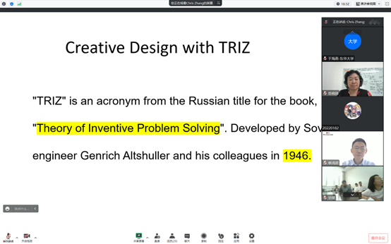 章文俊老师从产品创新以及工程、TRIZ设计原理与方法、设计的本质与再设计迭代、设计科学和技术等内涵展开,对创新设计思想、方法、行为和工具进行了深入浅出的阐述。学院设计学科相关团队负责人、部分中青年教师、博士生和高年级硕士生等100余人师生参加了此系列报告。