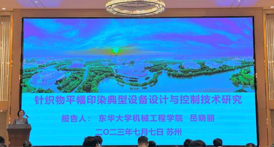 智能装备与软件系统团队负责人岳晓丽教授在会议的专题报道交流环节作了题为《针织物平幅印染典型设备设计与控制技术研究》报告,介绍了所在团队最近几年来在纺织与印染装备与技术方面的最新研究成果,引起了广泛关注。
