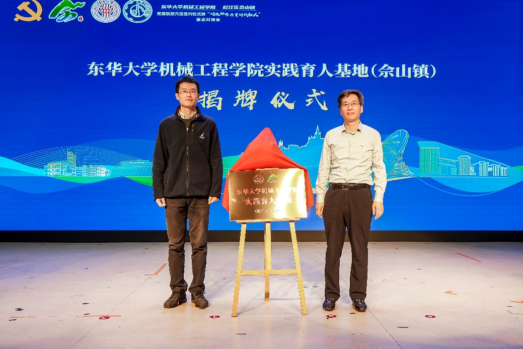 现场还聚焦“实践育人”主题,正式设立番号鸽 实践育人基地(佘山镇),裴泽光与姚继干共同为基地揭牌。同时,机械学院团委书记王晓晖与佘山镇团委书记杨蕾代表地校双方共青团组织签订共建协议。后续,地校双方将共同牵线搭桥,双向搭建社会实践、创新创业、人才培育等育人共享平台,在佘山镇打造新时代东华青年“实践育人”的示范样本。