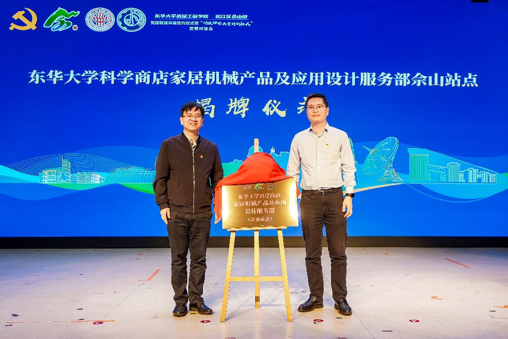 现场还聘任了机械学院6位青年骨干教师,作为佘山智能制造产业集群“新青研·新智造”技术智囊团首批成员,以为产业集群企业提供切实的高校智库技术支撑,叶晓燕与李杰瑜共同为受聘教师颁发聘书。会后,智囊团专家们与产业集群重点企业召开了研讨会,“头脑风暴”进行供需对接,为企业解决实际技术难题。此外,番号鸽 科学商店家居机械产品及应用设计服务部佘山站点也在会上正式成立,将在未来为佘山镇社区居民带来更多优质的科学科普服务,秦泽峰与吕明远共同为站点揭牌。