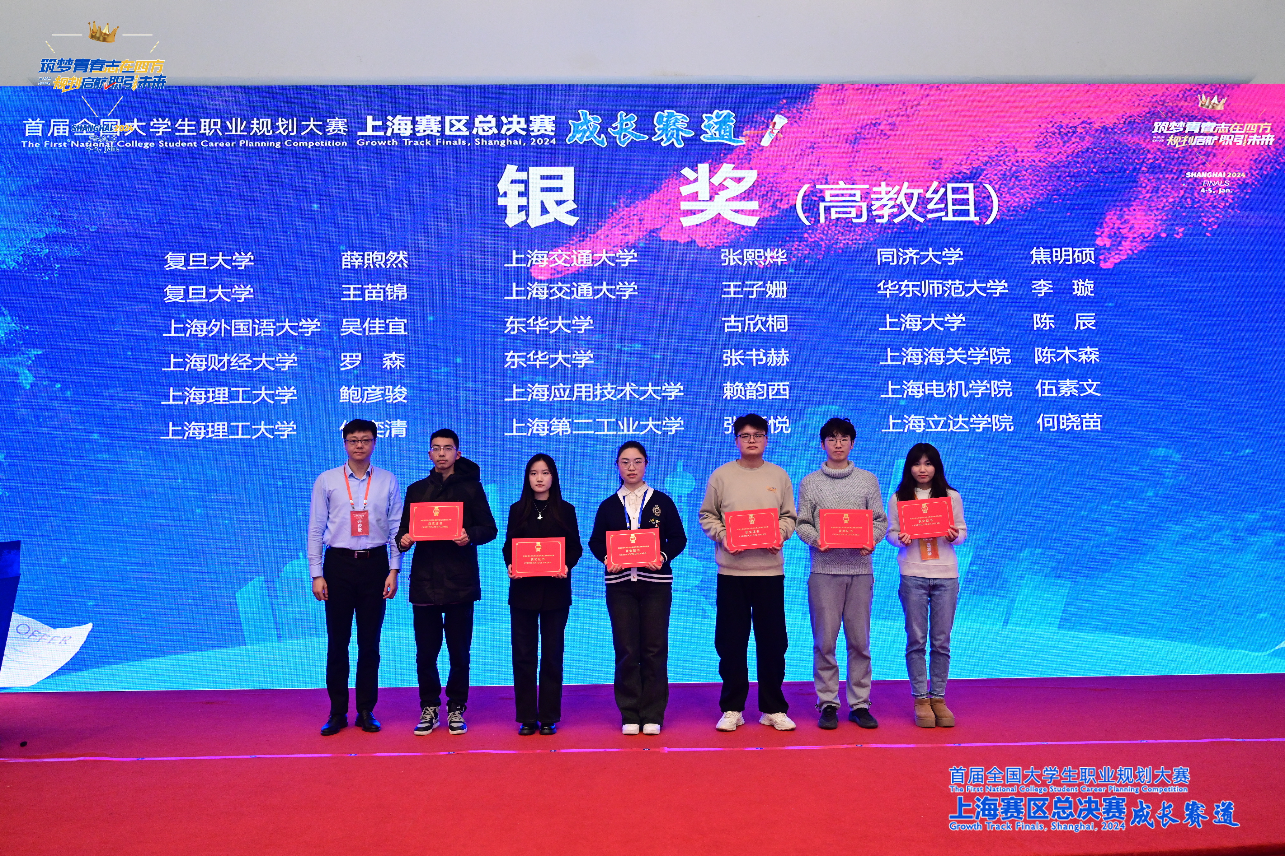 银奖获得者张书赫(左2)、古欣桐(左3)上台领奖