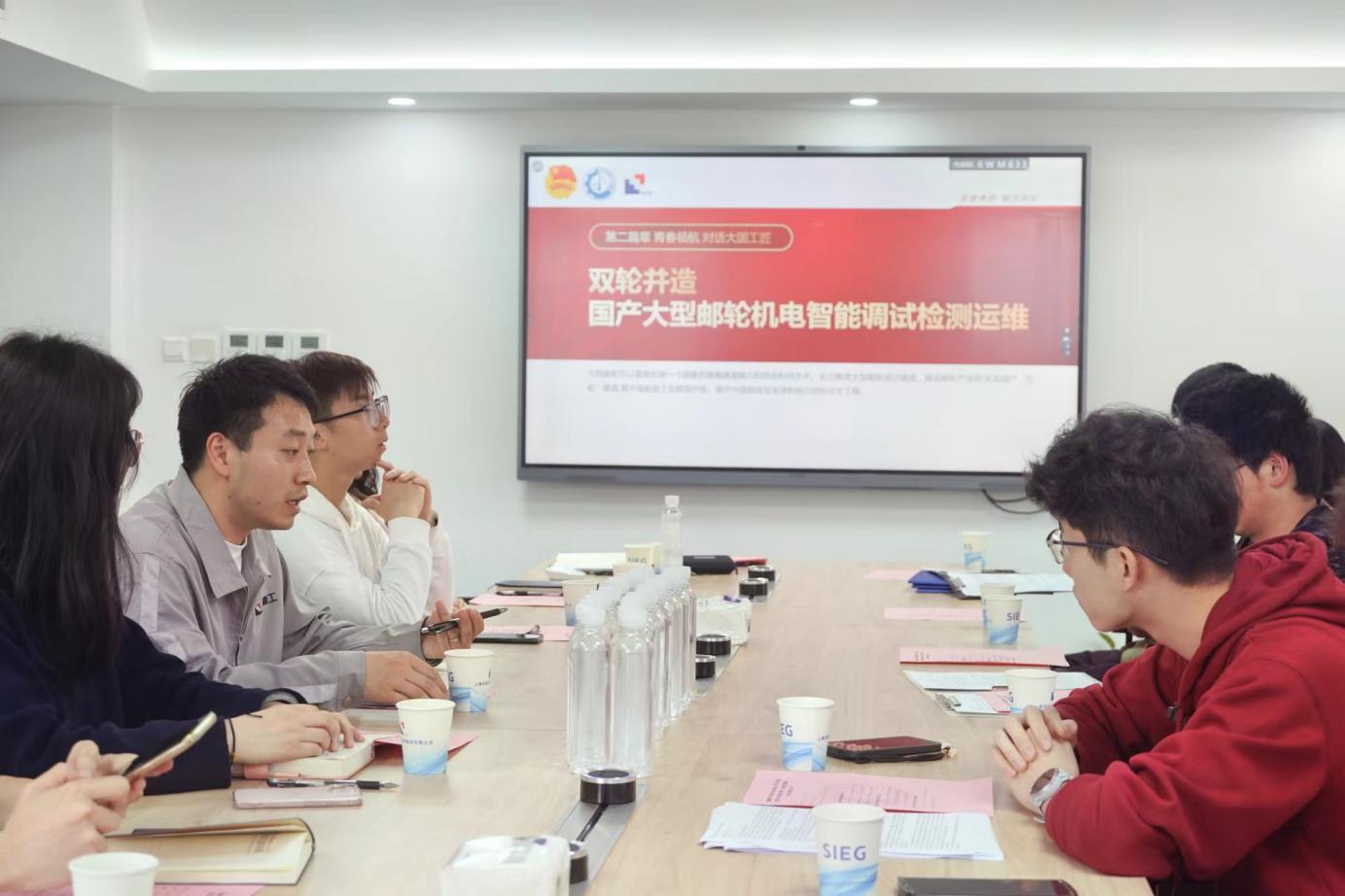 机械学院团委以“‘面对面’学习‘新质生产力’,产业一线对话‘大国工匠’”为主题开展了一场别开生面的示范性主题团日活动,组织学院青年学子在产业一线来了一场 “团学”与“团青”的青年对话,面对面共话新质生产力的前沿应用。来自上海建工安装集团调试检测中心、工业事业部和第三工程公司的三位工程师代表,分别结合自身参与国产首艘大型邮轮、硬X射线自由电子激光装置以及上海大歌剧院建造项目的经历,向机械学院青年学子阐述了所在团队攻坚克难、“啃硬骨头”的奋斗历程。机械学院学生代表也结合身边的科创故事、典型人物开展主题宣讲,阐释了东华人砥砺科研报国的创新精神。