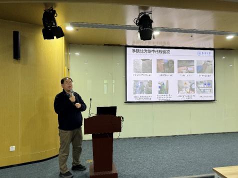 白涛首先通报了近期学校和学院实验室安全事故案例,以及近期安全检查中学院存在的主要风险隐患。他强调,学院下一步将加大检查力度和整治力度,组织开展安全培训演练工作,提升师生的安全意识、安全知识以及应急处置能力。