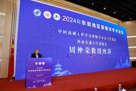 周仲荣主任委员代表中国机械工程学会摩擦学分会对论坛的顺利召开表示热烈祝贺。他指出,东部地区是我国经济最发达的区域,推动东部地区率先高质量发展,是党中央对区域经济布局作出重要战略部署。为了推动我国东部地区五省一市在摩擦学科学技术领域的进一步发展,中国机械工程学会摩擦学分会每年组织东部地区摩擦学学术论坛。经过几年的发展,论坛的影响力已经超出了东部地区的范围,吸引了来自全国各地的摩擦学学者。他希望本次论坛能为大家提供一个交流思想、分享成果、探讨未来的平台,激发出更多的创新火花,推动摩擦学领域不断取得新的突破,为相关科技和产业的技术进步贡献力量,为国家的高质量发展和制造强国战略提供有力的支撑。
