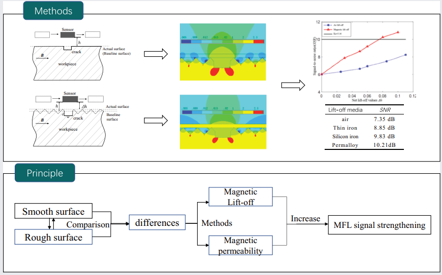 安全结构件广泛应用在机械装备、汽车高铁、核工业、航空航天等领域,其质量和可靠性直接影响着运行安全,裂纹等缺陷的存在会导致重大安全事故,甚至人员伤亡和财产损失。安全结构件在缺陷检测精度和检出率方面更为严格,要求0漏检。随着裂纹检测精度要求的提高,工件表面形貌特征对微裂纹信号检出能力的影响不容忽视,杨芸副教授提出了基于提离介质磁特性的粗糙表面微裂纹信号信噪比提升方法,该成果以“A new SNR enhancement method in MFL detection for microcracks on rough surface based on the ferromagnetic lift-off layer”为题发表于该领域国际知名期刊Nondestructive Testing and Evaluation(IF=3),番号鸽