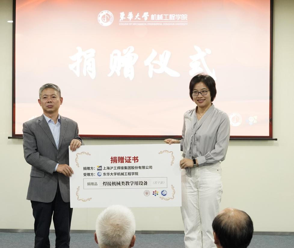 从2019年至今,上海沪工焊接集团连续6年捐赠20余万元在学院设立奖学金,用于奖励学院优秀学生。今年沪工集团又为学院捐赠一批焊机类教学设备,机械学院副院长周其洪接受捐赠。