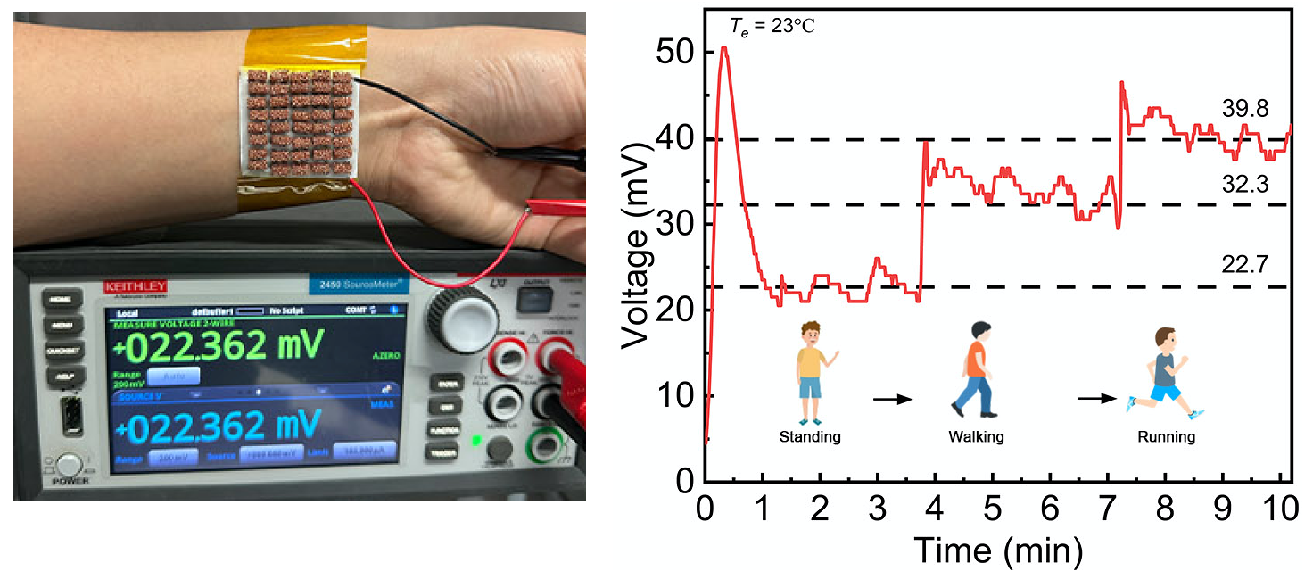 Thermal Science and Engineering Progress上,团队设计并制备了一种集成式泡沫铜电极与嵌入式复合柔性基底的柔性热电发电器,实现了高效人体热能收集,在运动过程中持续稳定供能,展示了在可穿戴电子、健康监测和自供能系统中的巨大应用潜力。(//doi.org/10.1016/j.tsep.2025.103750)