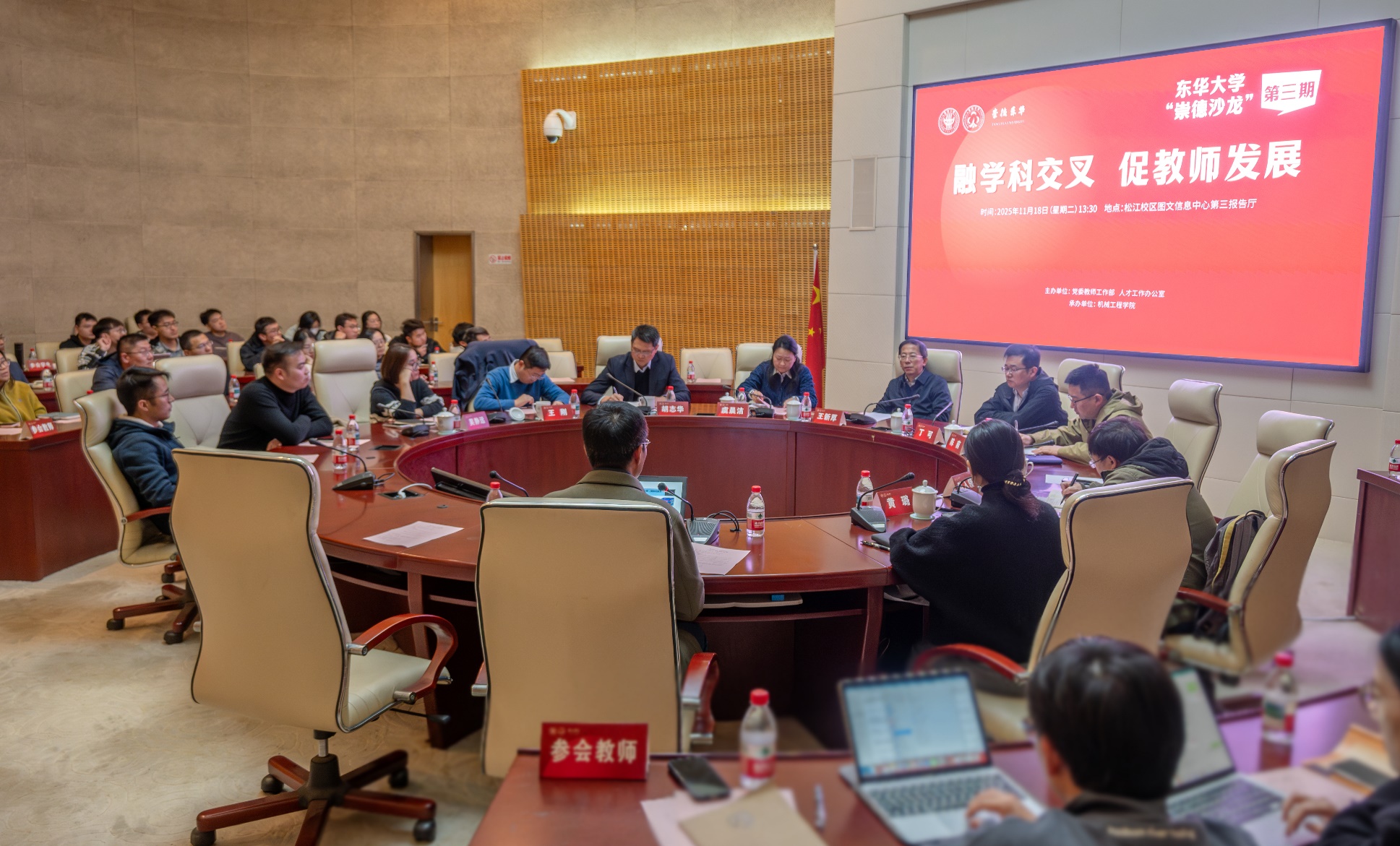 活动后,大家纷纷表示,学科交叉不仅是打破知识壁垒的钥匙,更是反哺“立德树人”根本任务的重要载体:在跨学科协作中,能更好地涵养“科学家精神”的严谨求实,践行“教育家精神”的育人担当;在打破边界的探索中,能以更开阔的视野引导学生,培养具备系统思维、创新能力的新时代复合型人才——这正是“为党育人、为国育才”初心的生动实践。